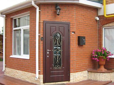 Dans un climat rude dans le mur extérieur de la maison installer deux portes avant... Le vantail de la porte du côté de la rue s'ouvre vers l'extérieur, et l'autre - dans la pièce. La deuxième porte intérieure, ainsi que l'entrefer entre les portes, réduit la perte de chaleur et empêche la porte extérieure de geler. Dans cette variante une porte en acier ordinaire peut être installée à l'extérieur. Il n'y a pas non plus d'exigences particulières pour une porte installée de l'intérieur de la maison. Vous pouvez installer une porte intérieure ordinaire. Il n'est pas nécessaire d'installer des serrures sur la porte intérieure, il peut suffire d'équiper la porte d'une serrure.