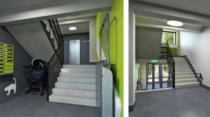 Selon les règles de construction, le dispositif d'une écluse thermique - un vestibule, est obligatoire dans un immeuble d'appartements situé dans des zones à climat tempéré et froid.