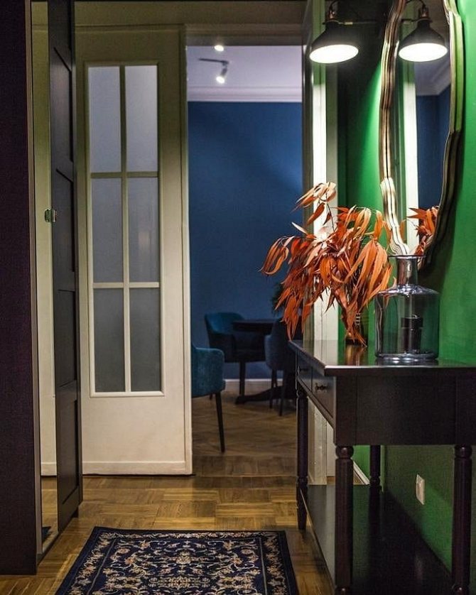 Le vestibule d'entrée peut être avantageusement combiné avec le couloir. Les locaux prévoient l'installation d'armoires pour ranger les vêtements d'extérieur et les chaussures, un endroit pour changer de vêtements.
