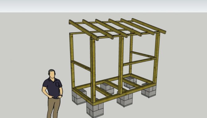 - La structure doit avoir un toit, alors n'oubliez pas les poutres du toit. Assurez-vous de les placer obliquement - les sédiments doivent être enlevés sous leur propre poids.