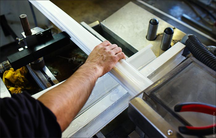 - Les blocs résultants sont traités sur des fraiseuses, grâce auxquelles ils acquièrent la forme d'un profil, complètement prêts pour la découpe et l'assemblage de structures de fenêtres;
