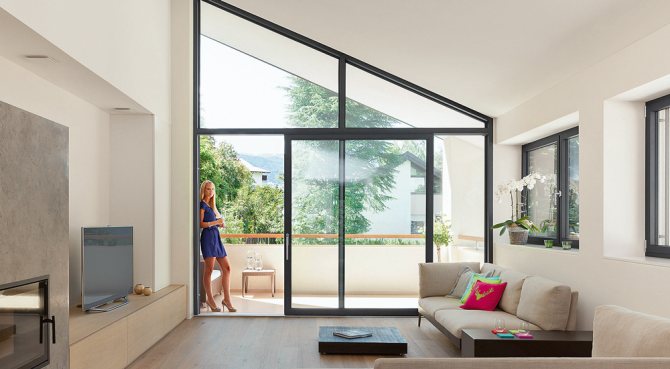 Photo: Finstral, Hörmann. En Occident, non seulement les fenêtres sont extrêmement populaires, mais aussi les portes en aluminium "chaud", par exemple les modèles de terrasse pliante (a) et les portes d'entrée anti-effraction avec une poignée "anti-panique" (b)