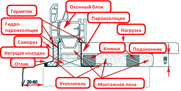 Article connexe: Types d'appuis de fenêtre pour fenêtres en plastique