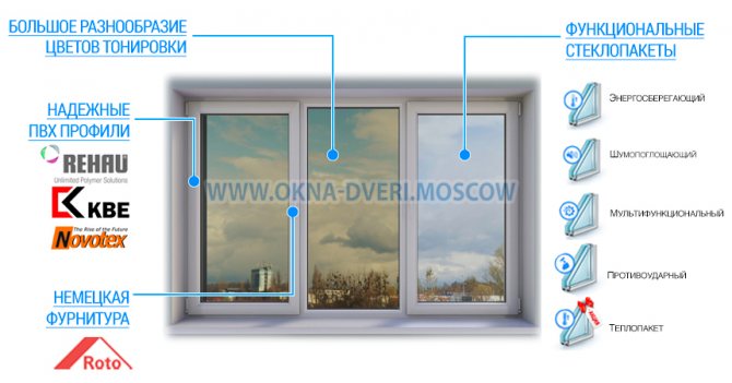 Les principaux composants des fenêtres teintées sont un profilé, une fenêtre à double vitrage et des ferrures - cela dépend de leur qualité et des caractéristiques de la manière dont le produit répondra aux attentes du client.