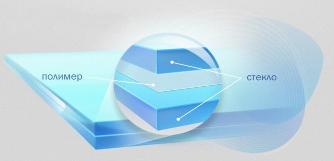 Dans ce cas, le triplex, s'il est endommagé, ne s'effrite pas en fragments. Ils sont maintenus en toute sécurité au moyen d'un film ou d'un composé spécial.