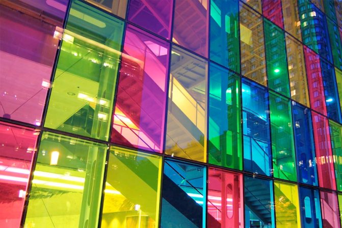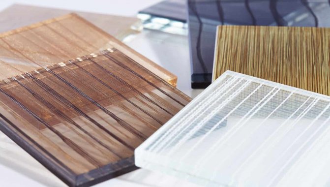 En verre feuilleté, il est possible d'utiliser une couche décorative supplémentaire: inserts en tissu, rotin naturel, bambou, film multicolore sous forme de dessins, motifs. Cette solution est utilisée dans la conception de vitrines de magasins, de cloisons de bureaux et de commerces.