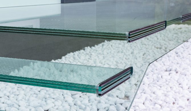 Le verre rempli convient à la construction de sols transparents, d'escaliers, de piscines.