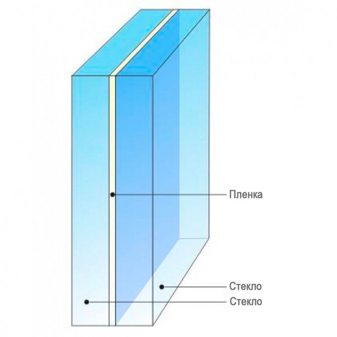 Si la charge s'avère insupportable pour le verre, elle se brise, cependant, les fragments ne s'envolent pas, mais sont conservés sur le film adhésif appliqué. Ce sont ces propriétés qui offrent une protection élevée contre les blessures à autrui lorsque le verre est brisé, ce qui, en passant, est classé comme sûr.