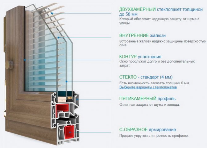 Nombre de chambres profilées: Box - 2-4 Leaf - 2-4 Leaf - 2-3 Résistance de transfert thermique réduite du boîtier combiné avec amplificateur - feuille avec amplificateur (4 chambres) R0 = 0,71 m2H ° C / W (classe 2 conformément à GOST 30673-99)