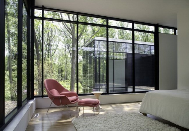 - La vue de la vue à l'extérieur de la fenêtre en présence de fenêtres d'angle devient plus large, cela est particulièrement apprécié si la maison est entourée d'une nature magnifique.