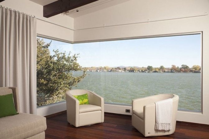 La pièce avec des fenêtres d'angle a l'air très inhabituelle, et en plus, le vitrage panoramique présente de nombreux avantages: