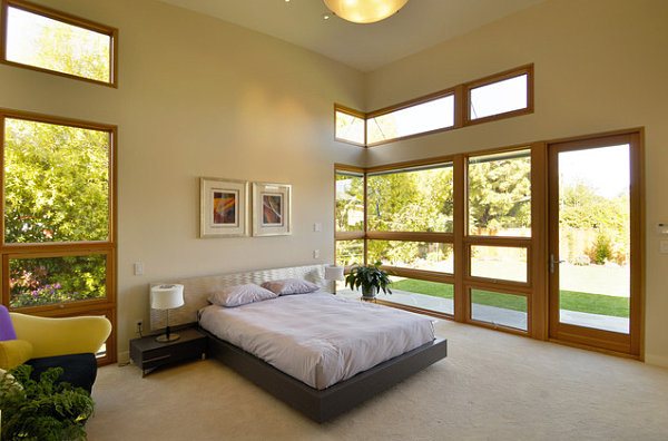 - Le placement non standard des fenêtres rend la conception de la pièce plus originale.