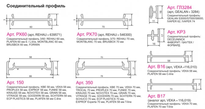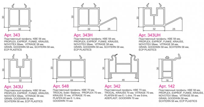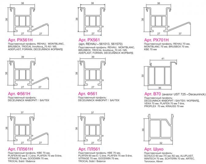 Le profil inférieur de base diffère par la taille, la section transversale, le nombre, le remplissage des chambres, la longueur, la hauteur, l'épaisseur des murs extérieurs, les cloisons d'intersection. Il existe des différences de compatibilité avec les systèmes de production.