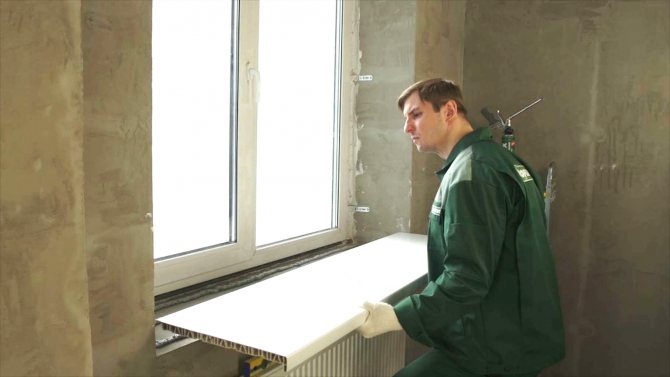 Tout d'abord, la surface doit être préparée pour le rebord de la fenêtre. L'ouverture est nivelée et nettoyée, des mesures sont prises pour la future structure, les marquages sont laissés au crayon. À l'aide d'une scie sauteuse, le produit est découpé aux dimensions requises. Lorsque le chevauchement est prêt, passez à l'étape principale - l'installation.