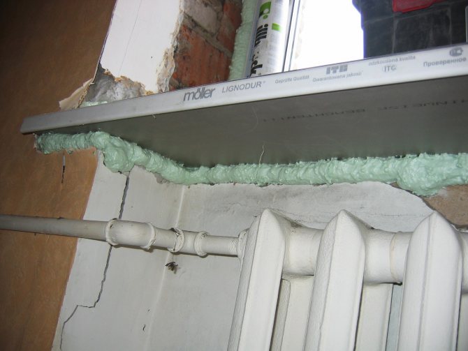 La mousse altère non seulement les qualités esthétiques du système de fenêtre, mais nécessite également une protection supplémentaire. Le matériau présente d'excellentes propriétés d'isolation thermique, mais est détruit par l'humidité. Vous pouvez sceller la mousse de deux manières: