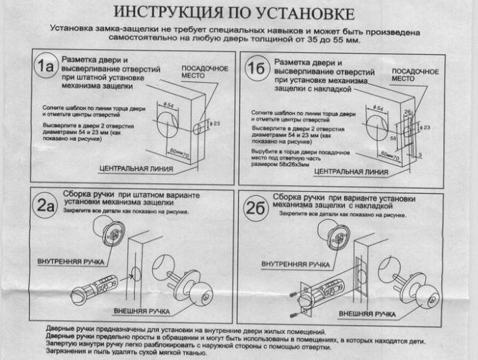 L'installation d'un tel loquet ne nécessite pas de démonter la poignée et le dispositif de verrouillage de la porte - il s'agit d'un dispositif supplémentaire, généralement situé légèrement plus haut ou plus bas. Il faut observer la correspondance relative des niveaux de la languette et du trou sur la gâche horizontalement.