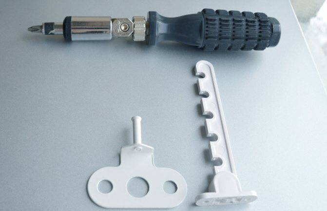 Compte tenu de la technique de pose d'un bouchon sur une fenêtre en plastique, il convient de noter que c'est à la place de la poignée qu'un cadre métallique avec un support est installé. Tous les trous doivent être alignés. Une fois la goupille de réglage installée dans le trou correspondant, la barre de structure sera correctement installée dans le siège. À l'aide de vis autotaraudeuses, la structure est fermement fixée. À l'extérieur du châssis, la pointe de la tige doit légèrement dépasser.