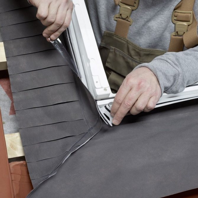 - Maintenant autour du cadre de l'extérieur avec une agrafeuse, l'étanchéité est fixée. Les extrémités sont nichées sous le revêtement du toit.