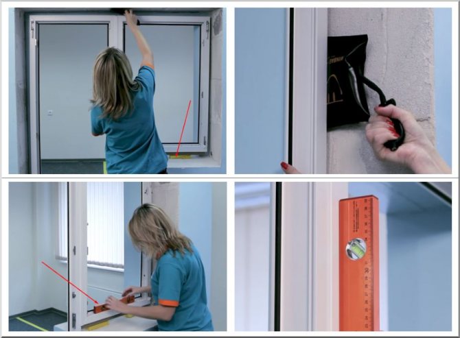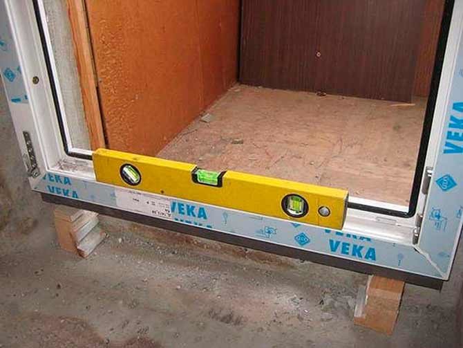 L'installation des portes en plastique ne doit pas commencer tant que vous ne vous êtes pas assuré que la boîte est dans la bonne position, ne dévie pas d'un côté ou n'est pas inclinée. S'il y a un désalignement, le cadre doit être ajusté, vérifiez s'il se tient correctement en utilisant le niveau du bâtiment. Il est plus pratique de commencer l'installation du côté des auvents depuis le haut de la structure.