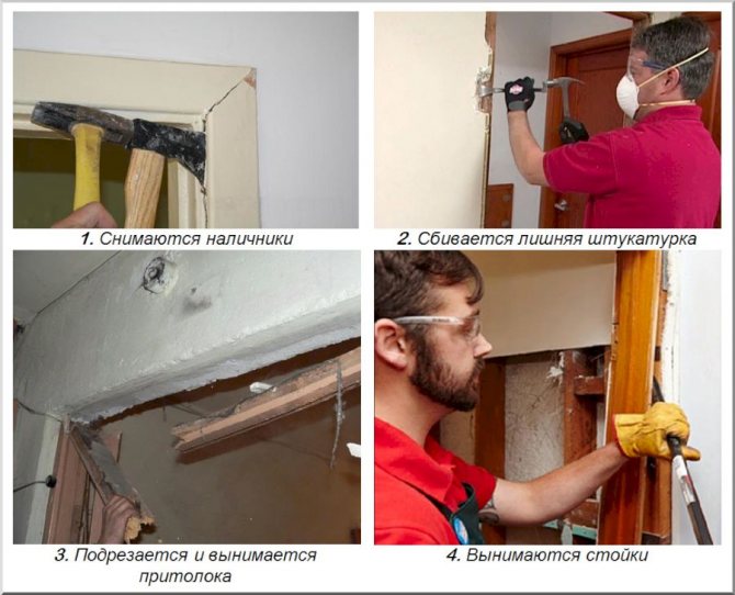 Ici, vous devrez séparer le vantail de la porte du cadre - une telle séparation facilitera grandement le processus d'installation des portes et vous permettra de faire face même seul.