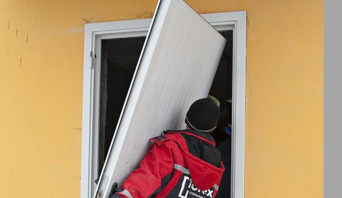 - Démontez les portes. Dans la plupart des cas, toutes les portes en plastique sont livrées à partir de l'usine de fabrication déjà assemblée. À l'état démonté, seules les portes à double plancher peuvent être fournies, et ce n'est pas toujours le cas - fondamentalement, le fabricant préfère n'en retirer que les fenêtres à double vitrage (le cas échéant).