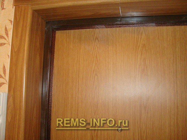 Le film et le ruban de masquage sont retirés du vantail et du cadre de la porte. Ceci conclut le travail. L'ensemble du processus de formation des pentes de la porte d'entrée est assez simple, choisissez l'option qui vous convient et procédez à la mise en œuvre de votre plan.