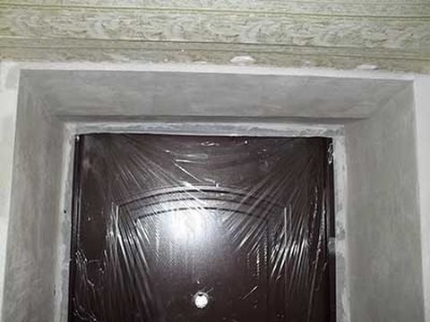 Pour toute méthode de formation d'une pente, l'étape préparatoire est la même. Avant tout travail, le vantail et le cadre de la porte doivent être collés avec du papier d'aluminium et du ruban adhésif pour ne pas l'endommager. Tout d'abord, toutes les parties particulièrement saillantes sont supprimées, ce qui peut gêner l'installation du cadre de la future pente ou faire saillie au-dessus du niveau de plâtrage.