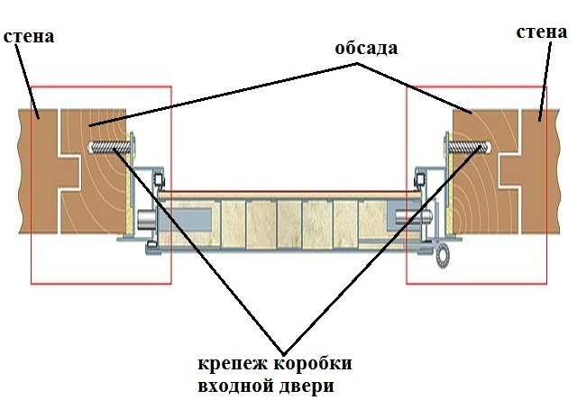 Maintenant, en utilisant les mêmes cales installées sur les côtés de la boîte, nous fixons la porte d'abord en haut de l'ouverture, puis en bas. N'oubliez pas que la boîte doit être fermement pressée contre les quatre butées à la fois (chevilles martelées dans l'ouverture).