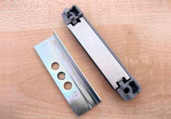 L'installation du loquet consiste à visser la plaque magnétique sur le cadre de la porte, et la contre-bande métallique à l'extrémité de la porte. Habituellement, les trous de fixation des planches sont alignés avec les trous de la quincaillerie de porte standard. Tout d'abord, nous vissons les plaques sans serrer et vérifions le fonctionnement du loquet. Après nous être assurés que tout est en ordre, nous serrons les attaches jusqu'au bout.