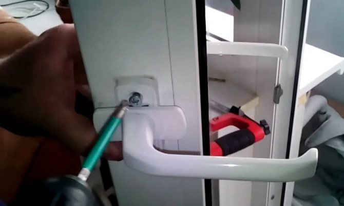 Voyons comment éliminer le jeu dans la poignée. En règle générale, cela se produit lors d'un fonctionnement prolongé des portes. Cela est dû au fait que les fixations sont desserrées (les vis sont desserrées). Pour effectuer des corrections, la poignée est placée en position horizontale ("ouverte"). Ensuite, le bouchon recouvrant les vis est pressé et tourné. Les vis sont serrées avec un tournevis, la poignée fonctionne à nouveau comme neuve. Avant de remettre la fiche à sa place, il est nécessaire de tester le fonctionnement de l'appareil en ouvrant et en fermant le mécanisme. Si tout est en ordre, la fiche est retournée.