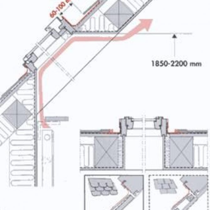 Une gouttière de drainage est installée sur le dessus de la structure de la fenêtre, sous laquelle est placée la partie supérieure du tablier d'étanchéité (inclus dans le kit du produit). Les bords du tablier sont amenés dans la pièce, attachés à la caisse, aux chevrons, à la barre de montage.