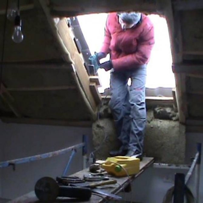 - L'étape suivante consiste à découper une ouverture pour une fenêtre dans la toiture à l'aide d'une meuleuse.