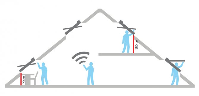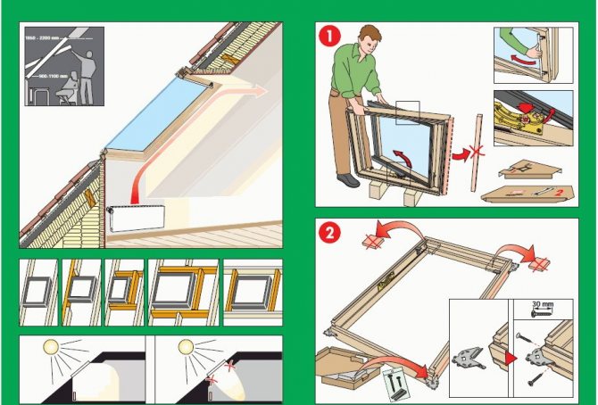 Vous devez également choisir la bonne hauteur à laquelle les fenêtres seront installées. L'emplacement des fenêtres de toit doit être choisi de manière à ce que la partie inférieure du cadre s'élève de 1 à 1,5 mètre au-dessus du niveau du sol.