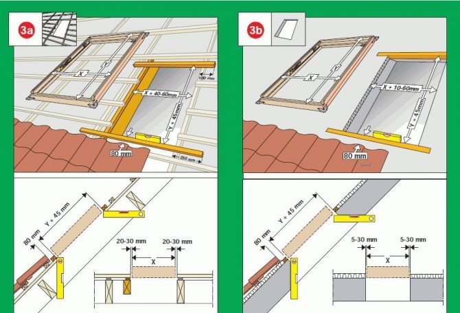 - L'espace technique entre le bas du système de fenêtre et le revêtement du toit est d'environ 8 cm. De la poutre de montage supérieure au matériau de la toiture, il reste 4 à 10 cm - pour éviter que la fenêtre ne s'incline lorsque la structure en treillis se rétrécit.