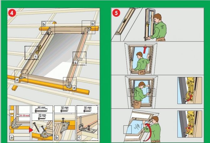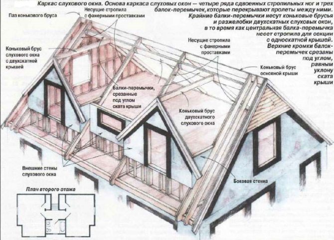 Il est conçu de manière à ce que la fenêtre se trouve entre les chevrons du toit de la maison. Aux points de contact, ils sont renforcés: des doubles chevrons se forment.