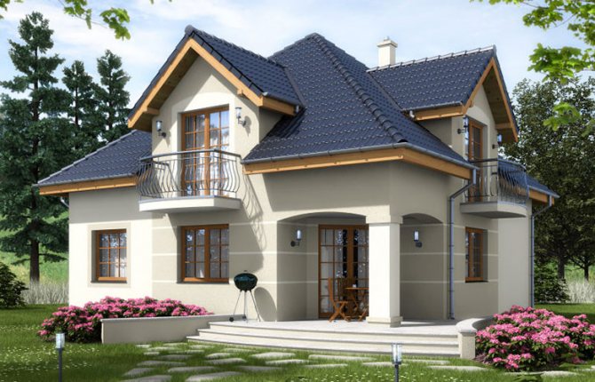 Tout élément de la conception de la maison doit être en harmonie avec l'aspect général du bâtiment. Recommandation d'experts: placer des lucarnes d'au moins 1 m en projection verticale entre les structures, si elles sont réalisées en damier.