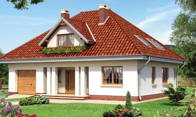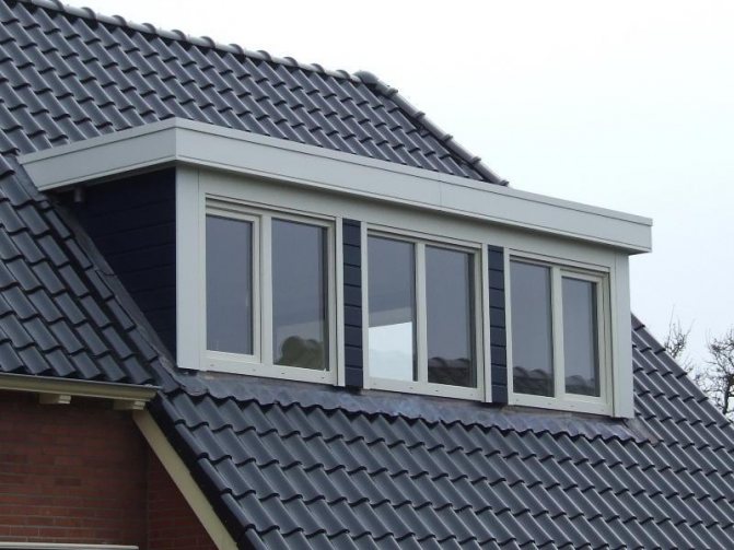 Les lucarnes ont des formes différentes. Un toit à pignon ou en pente est installé sur une telle structure.