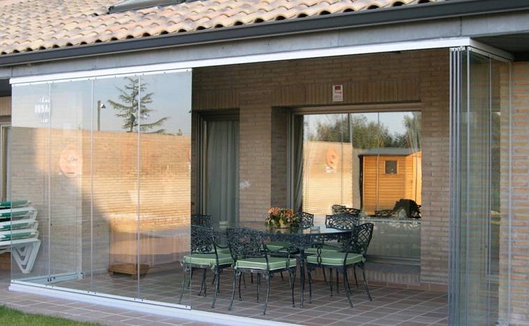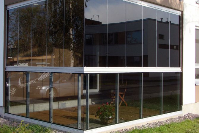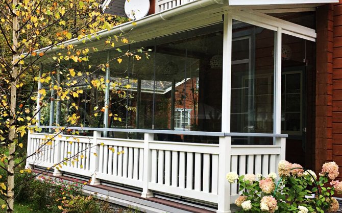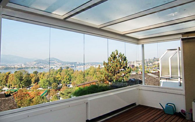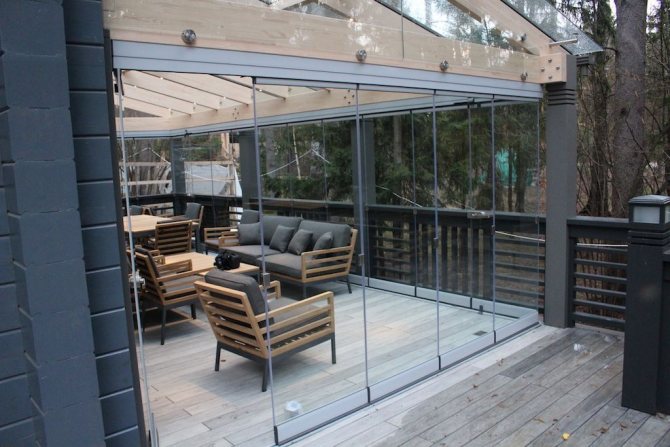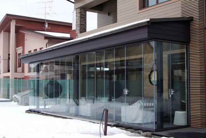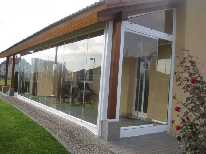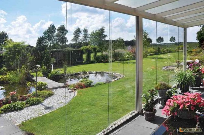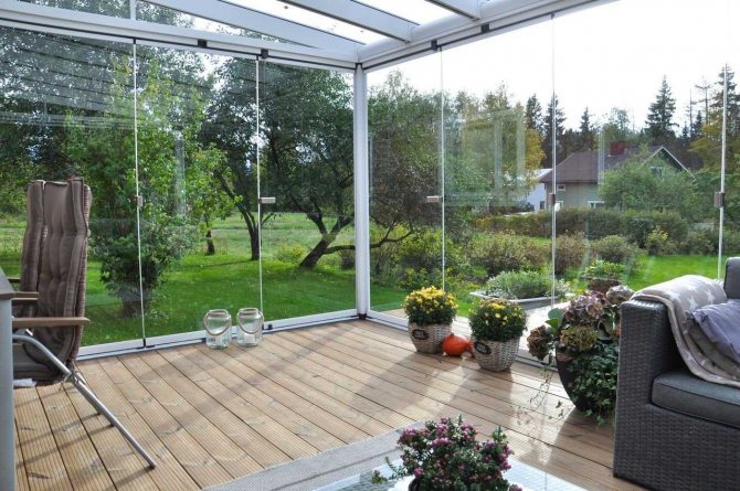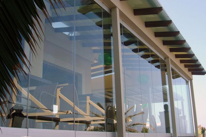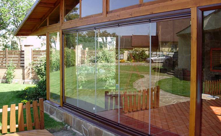 Vitrage de la véranda et de la terrasse: sans cadre et avec cadres