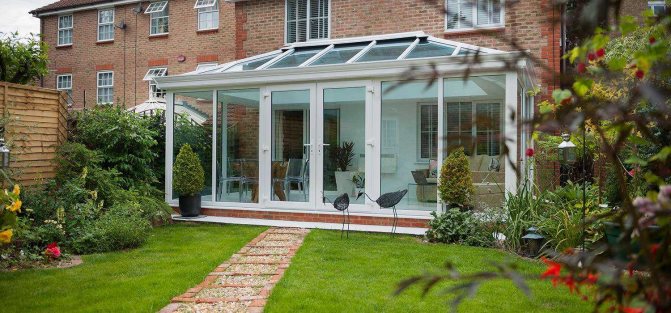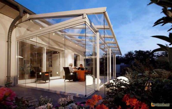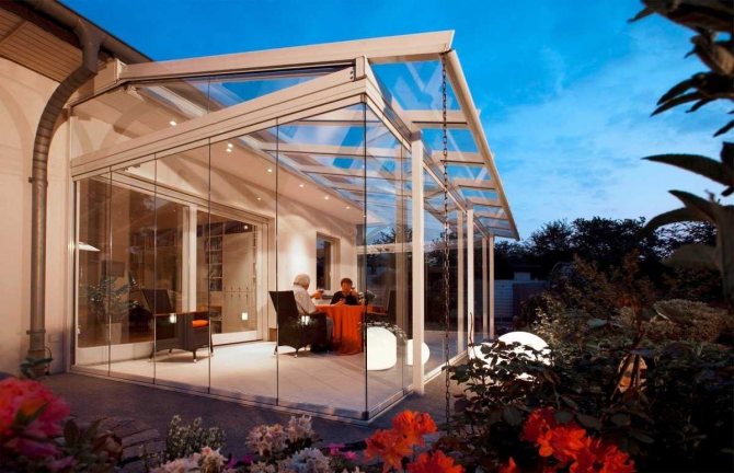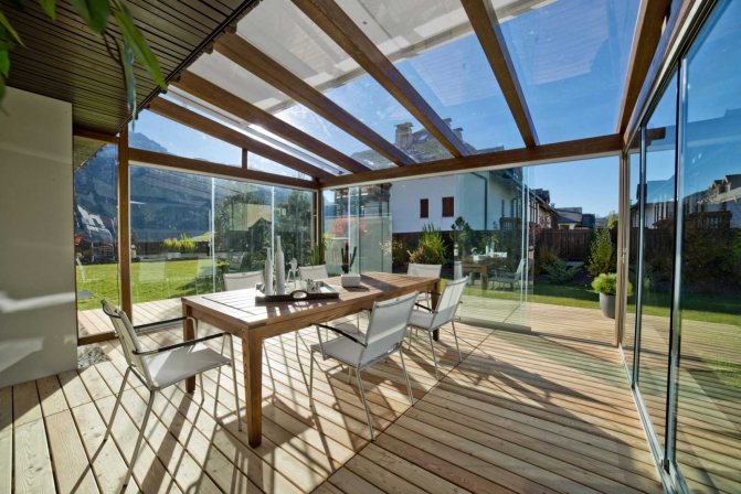 Le polycarbonate peut être considéré comme une construction temporaire, mais une véranda à part entière est souvent fabriquée à partir de ce matériau.