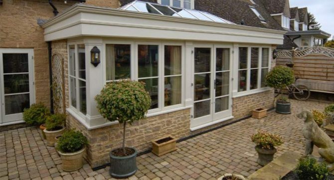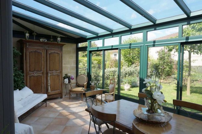 - Possibilité de raccordement au chauffage et utilisation des locaux en hiver (uniquement pour vitrage chaud). Ici il est tout à fait possible d'équiper une chambre, une petite chambre d'amis, un jardin d'hiver, un débarras et une cuisine ou salle à manger. Le choix d'un objectif fonctionnel dépend entièrement de la quadrature de la véranda elle-même et de ses capacités.