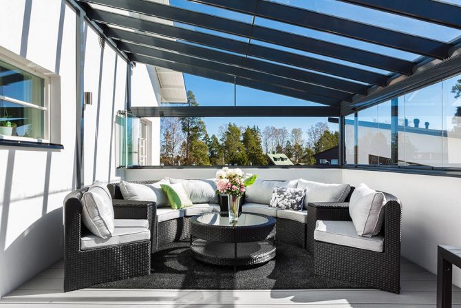 Bien que les terrasses ne soient généralement pas chauffées, des vitrages chauds peuvent leur être très utiles. Grâce à lui, le temps d'utilisation confortable de la terrasse est allongé du premier printemps au début du gel. Utilisez les portails VEKA pour le vitrage chaleureux de la terrasse.