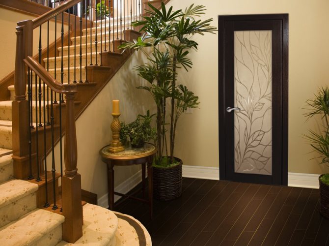 Une porte intérieure avec verre a l'air laconique et attrayante. Ces modèles vous permettent de donner de la légèreté à la pièce, de la légèreté de l'intérieur, de laisser entrer une grande quantité de lumière solaire dans la pièce. Le verre trempé ou triplex moderne se caractérise par une résistance aux chocs et une sécurité élevées. Cependant, leur prix fait réfléchir à l'opportunité d'installer un tel modèle.