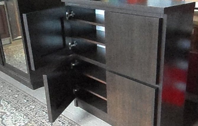 - Les produits en panneaux ont une structure creuse. Les cavités sont généralement remplies d'inserts en carton en forme de nid d'abeille. Ces modèles se distinguent par leur faible poids - 10-15 kg.