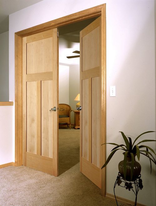 Ainsi, par exemple, il existe des produits aveugles avec des fenêtres (en verre ou en plexiglas), creuses (comme, par exemple, toutes les toiles en MDF) et pleines (en bois massif ou collées), des portes battantes ou coulissantes.