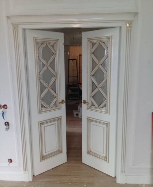 La largeur des portes intérieures à deux vantaux est déterminée par la largeur totale de l'ouverture, quelle que soit la valeur, par exemple, pour une porte aveugle et pour une porte active, se déplaçant sur des charnières. La norme comprend des largeurs de 120, 140 cm.