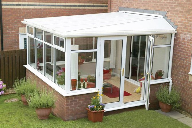 - Plastique. Sont moins chers structures en aluminium et peut être combiné avec du polycarbonate et du verre. De ce fait, le poids de la structure est réduit, tandis que la résistance, au contraire, est augmentée.