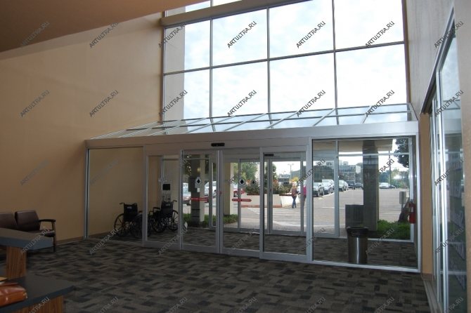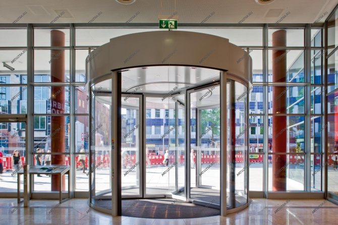- Radial. Ils ont un grand rayon d'ouverture (plus de 1,5 m). Ils sont utilisés dans les grandes installations sportives, de divertissement et de vente au détail. Il est conseillé d'utiliser dans les bâtiments avec une grande surface avant.