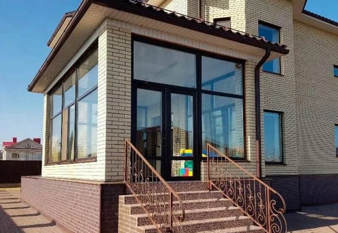 - Escaliers - n'est pas seulement décoratif, mais aussi un élément nécessaire si l'entrée est haute. Un escalier de haute qualité ne doit pas devenir glissant en hiver; pour plus de commodité et de sécurité, il doit être équipé d'une main courante.