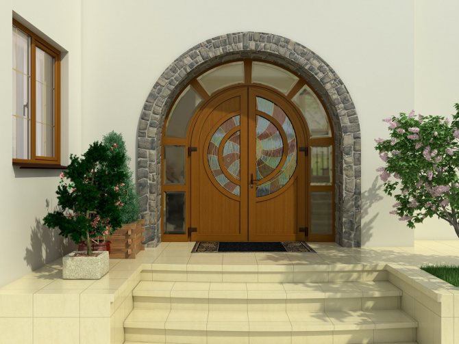 Le porche semi-circulaire lisse bien les coins pointus et s'adapte parfaitement aux marches droites. L'entrée de la maison devient confortable et élégante.