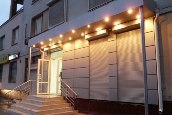 En plus de la porte en plastique, une visière forgée recouverte de polycarbonate est installée. Il se fixe directement au mur au-dessus de l'entrée.